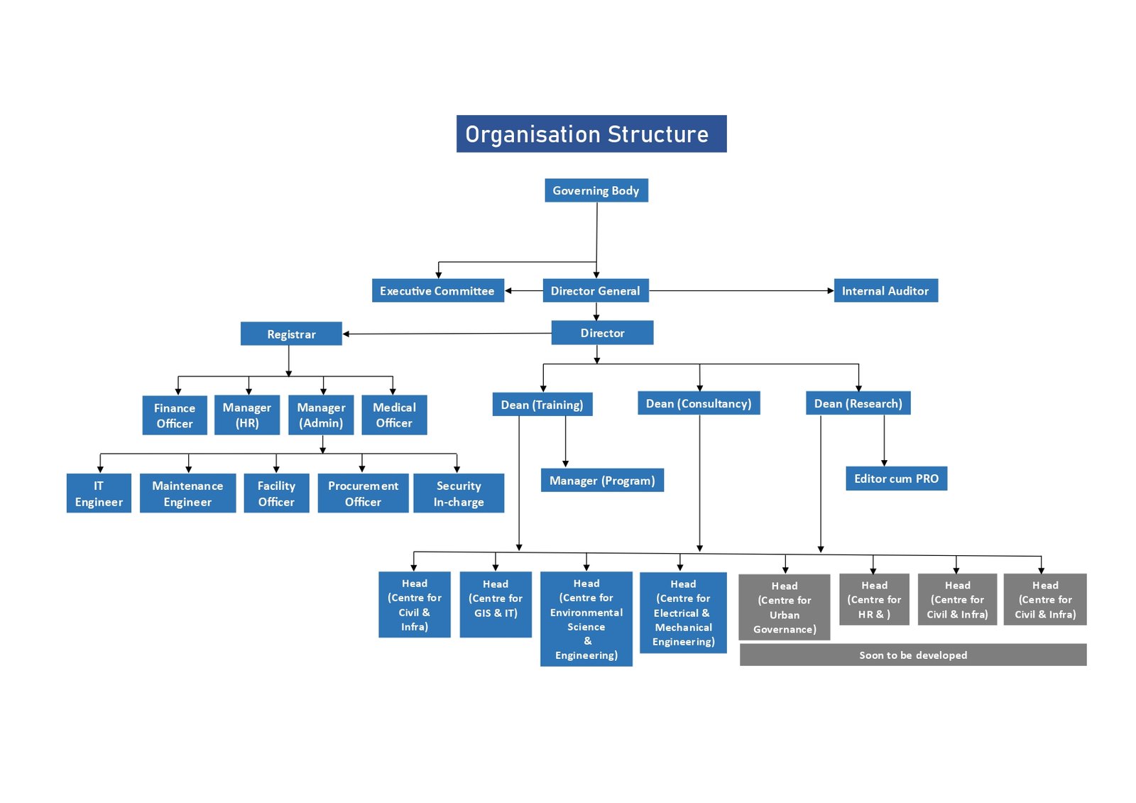 The MCGM Centre for Municipal Capacity Building & Research (MCMCR) operates under a well-defined organisational structure to ensure effective governance and delivery of services to Urban Local Bodies across Maharashtra.